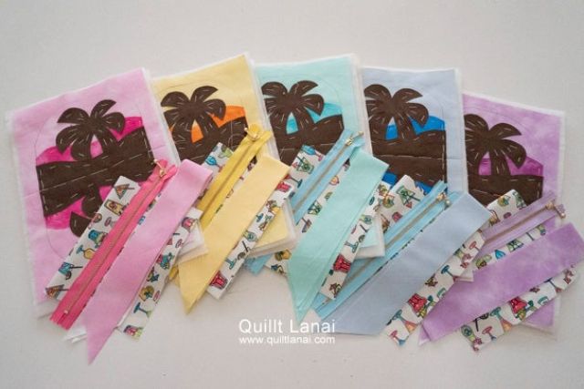 グラデーションの色使いが素敵なヤシの木のミニポーチのしつけ済みキットです。