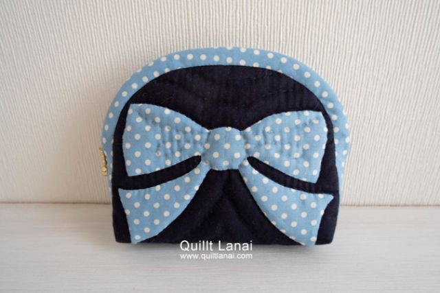 リボンをデザインしたミニポーチのしつけ済みキットです。