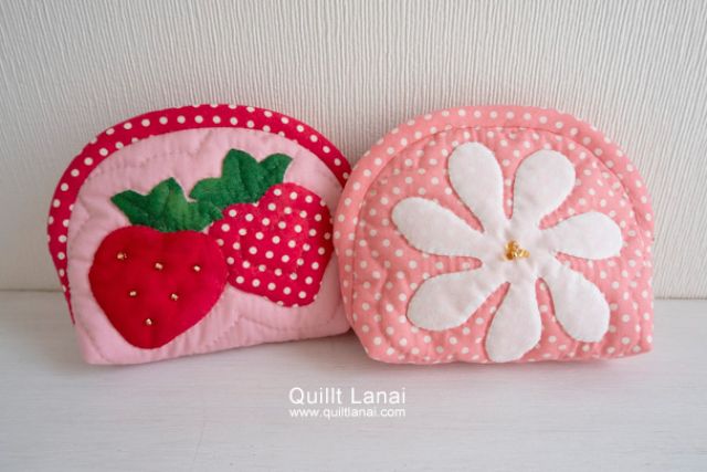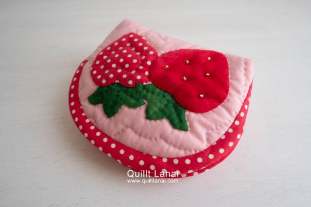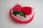 ドットのいちごが可愛い、ミニポーチのしつけ済みキットです。