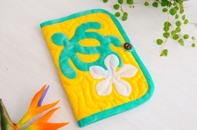 ホヌとプルメリアの通帳ケースのしつけ済みキットです。